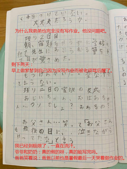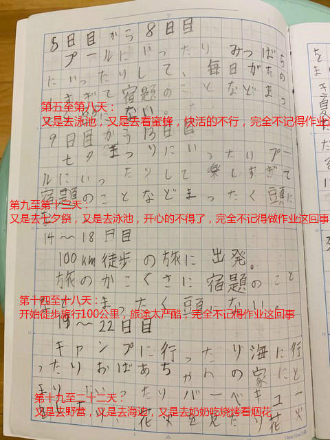 不过今年,他强迫自己开学前才动笔,并记录下了这期间有趣的心路历程和家人的反应。