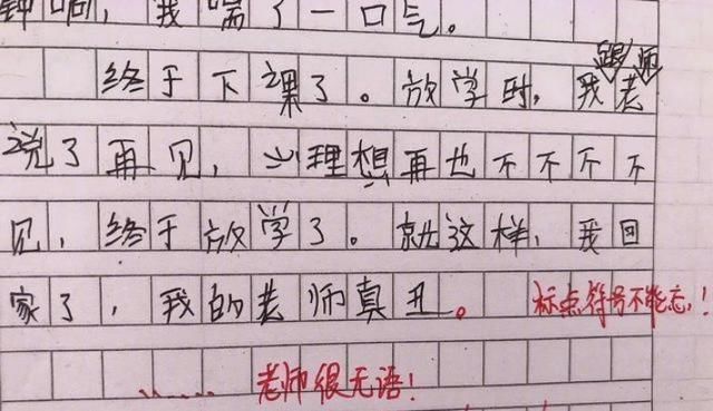 很多人在小学的时候可能都会对老师怀有怨言,甚至不想再看见老师了。可是这样的想法并不敢表达出来,然而这一位学生不仅写出了内心的想法,而且还补了一句老师真丑。