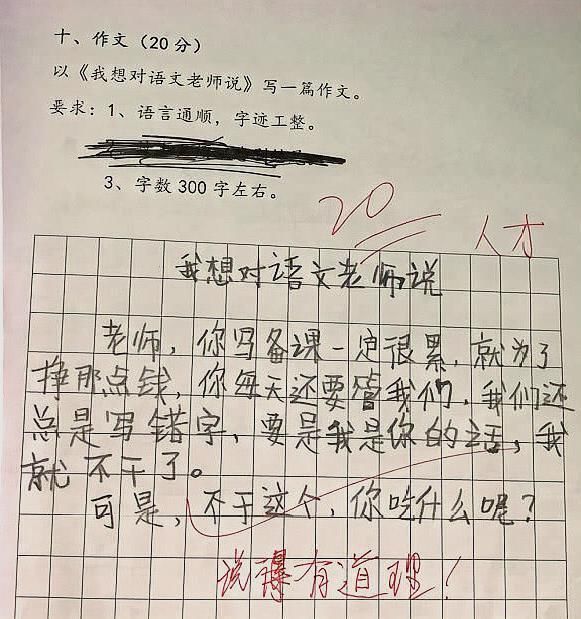 学生角度清奇,他站在了老师的角度去写这一篇作文。