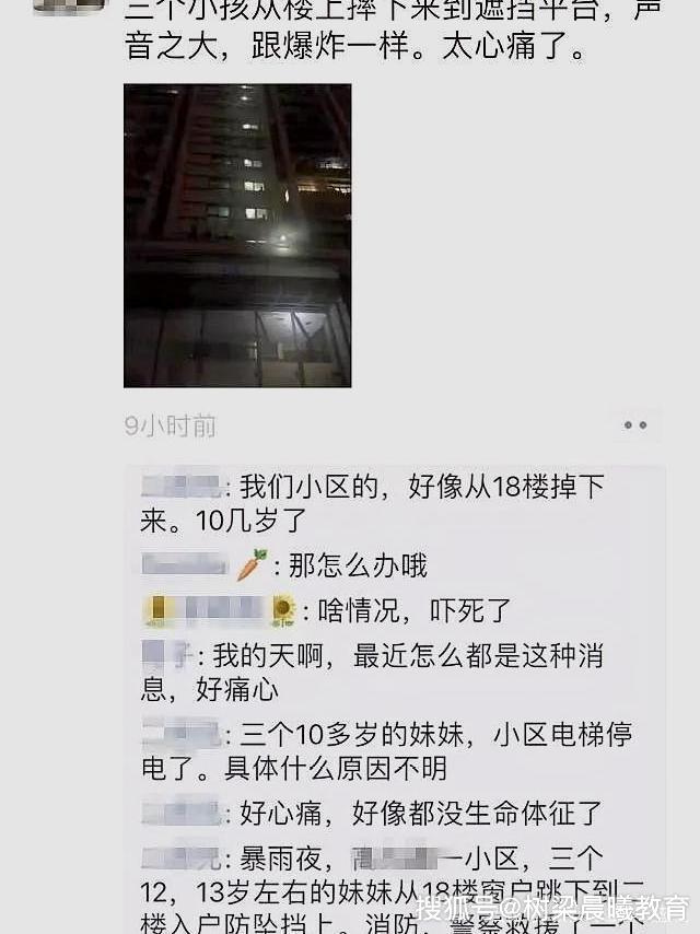9月8日,刚开学没几天,重庆市石桥铺半山七号小区,三名初二的学生手牵手集体从18楼跳下。等120赶到现场,三个女孩都已经没有了生命体征。