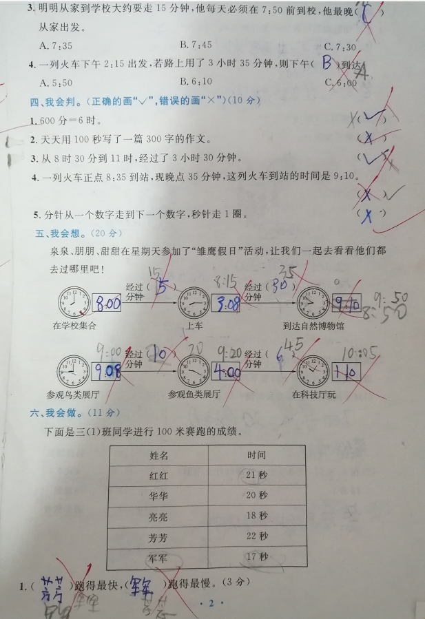 当小学生学会了看钟表,认时间以后,再根据自己的生活经验,再来做这些数学题,就变得容易了。