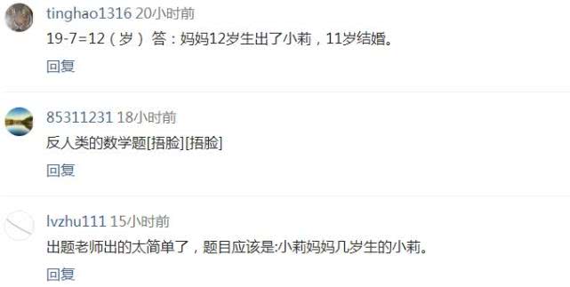 有同学说,这是反人类的数学题。也有同学说,题目应该是小莉妈妈几岁生的小莉。哈哈,看来啊,出题的同学,得认真反思一下喽!数学题,也得符合人类的生长规律不是么!这样“不负责任”地出题,难怪家长要“发怒”了!