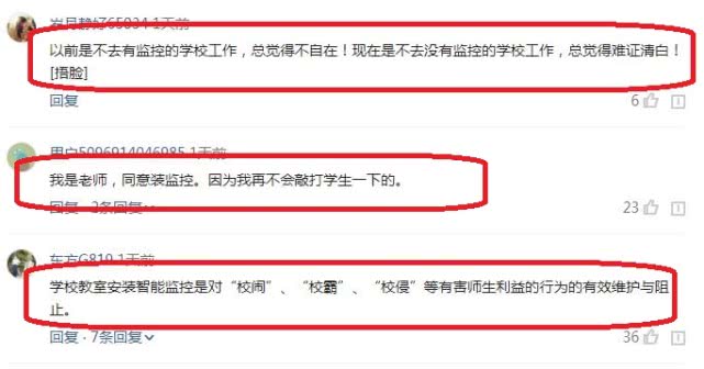对于教室安装监控,大家统一的认识,就是这样做,是在保护老师和学生们的正当权益。比如,这样做,可以证明老师们的清白;比如,这样做,老师可以提醒自己别再敲打学生;比如,这样做,有效地制止了“校闹”、“校霸”、“校侵”等现象。