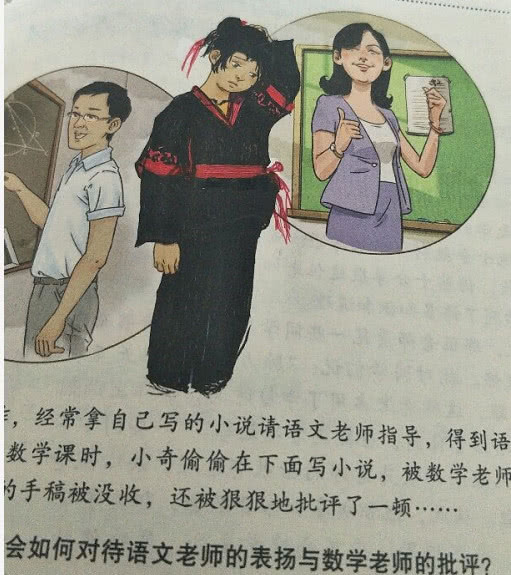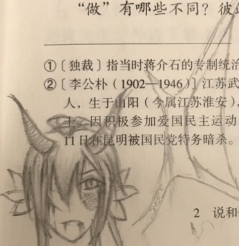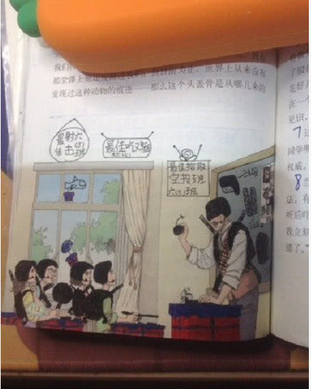 课本涂鸦,真的是小学生的强项呢,来看上图,这种人物造型,好独特呀!这些小学生,都是作画的天才呀!老师真的,低估了同学们的能力!