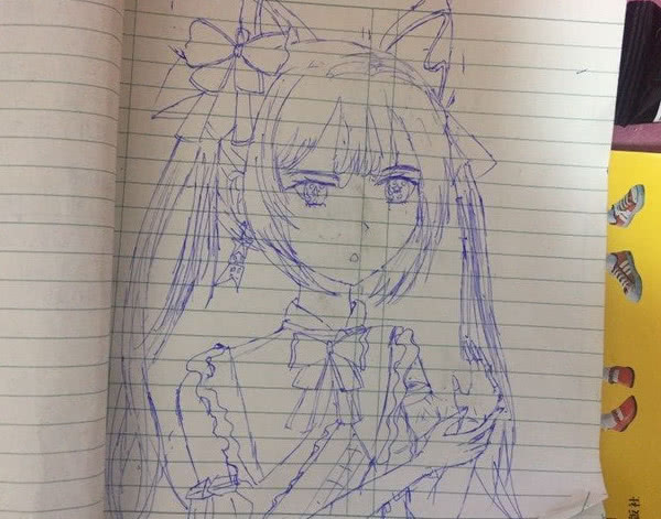 这位小学生,在笔记本随意画的涂鸦作品,还真的有点水平呢!看来,也是下课无聊时,用笔画的,现在的小学生,都这样有才吗?