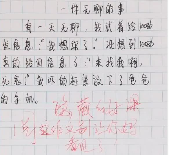 哈哈,上面这篇小学生的作文,简直是太有趣了,不愧是“神”作文和“神”回复!当看到老师的评语时,同学,你是不是特别想笑呢?
